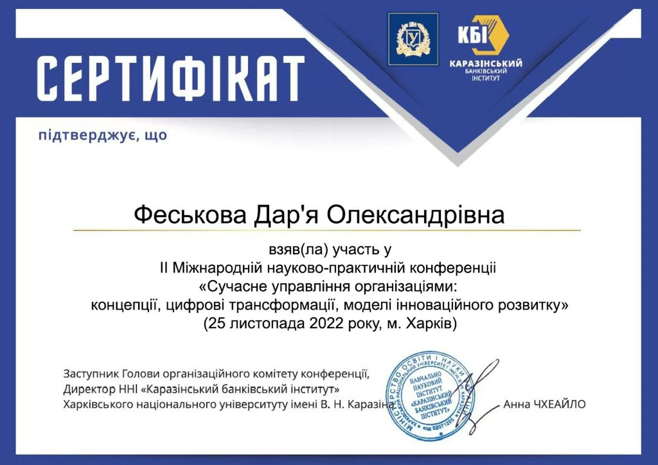 Participó en la Segunda Conferencia Científica y Práctica Internacional “Gestión Moderna de organización: Conceptos, Transformaciones Digitales, Modelos de Desarrollo Innovador” la que se llevó a cabo el 25 de noviembre de 2022 en Járkov