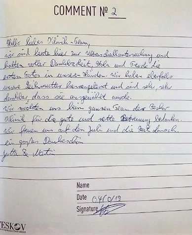 Al leer los comentarios sobre el centro de maternidad subrogada del Feskov Human Reproduction Group, uno encuentra un hilo conductor: un mensaje de esperanza. Futuros padres de todo el mundo comparten sus conmovedoras historias sobre la realización de sus sueños de paternidad con la ayuda de esta clínica.